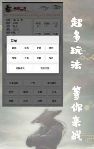 Xia Ke Jiang Hu Shi Yi Kuan Wen Zi Wu Xia You Xi 。 Zhe Kuan You Xi Huan Shi Shu Xi De Wei Dao , Wan Fa Nei Rong Ye Shi Yi Yang , Wen Zi You Xi De You Xi Xing Zheng Ti Du Shi Hen Bu Cuo De , Sui Ran You Xi Mei You Zhan Dou Hua Mian , Dan Wan Jia Zai Zhe Li De Ti Yan You Shi Bie You Yi Fan Feng Wei De , You Xi Li Wan Jia Tong Yang Ke Yi Da Guai Sheng Ji , Ti Sheng Ren Wu Jing Jie , Jia Ru Men Pai , Xue Xi Geng Li Hai De Gong Fa 。 Wan Jia Zai Xia Ke Jiang Hu Shou You Zhong Ke Yi Tong Guo Bu Duan De Mao Xian He Zhan Dou , Huo De Ge Zhong Zhuang Bei , Huan You Duo Yang Hua De Jiao Se Yang Cheng , Xi Huan De Xiao Huo Ban Yi Ding Bu Yao Cuo Guo !