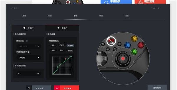 5、 On the joystick page, adjust both the sensitivity scheme and sensitivity curve to high performance, and set the joystick dead zone to 0%< p>